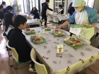 今日は6年生と調理員さんとの給食交流会でした。「作った人に感謝していただきましょう。」ということばをどの学年も言っていますが、調理員さんと食べるときは感謝の言葉を伝えるといいですね。今日は調理員さんが「好きなメニューは何?」「苦手な食べ物はある?」など話をしてくださっていました。