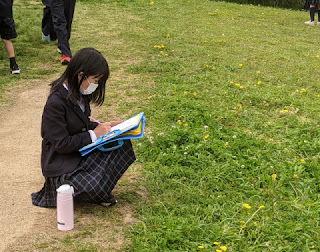 3年生と7年生の理科の時間、合同で「春見つけ」に、松尾寺公園に行きました!春の草花や生き物を観察しました!とても気持ちのよい天気で、皆さん、観察をがんばりました!